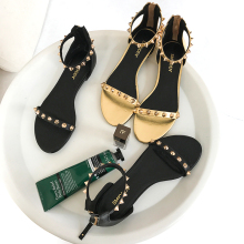 2017年夏季新款一字扣带罗马凉鞋百搭平跟鞋铆钉女鞋欧美休闲鞋女