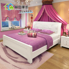 林中漫步 实木床1.5白色储物高箱大床 1.8米欧式田园公主单双人床