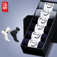 汉骄礼盒装男士袜子中筒袜长袜吸汗棉袜薄款商务男式提花袜6双装