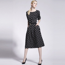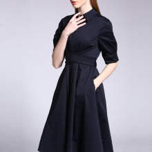 高端!精工裁剪棉质连衣裙 优雅精致中裙裙子 2016
