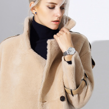 出意大利 高端 美利奴羊皮毛一体女士皮草大衣外套羊剪绒大衣冬装