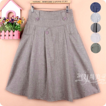 亚麻女a字裙子韩版高腰学生半身长裙春夏款棉麻半身裙中长款半裙