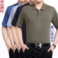 【天天特价】短袖T恤翻领棉有口袋中年有大号宽松男装上衣爸爸t恤