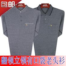 包邮春秋中老年男装t恤长袖T恤老人衫男士中年爸爸装立领纯色体恤