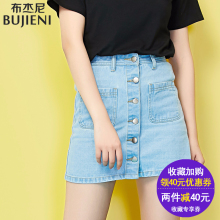 布杰尼浅色纯棉高腰一排扣子牛仔a字半身裙女夏2017新款韩版学生