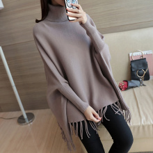 高领流苏毛衣女套头打底衫2016秋装女装新款宽松秋冬针织衫外穿潮