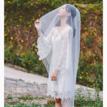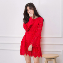 [落英]2017夏季新款旅拍蕾丝喇叭袖露背草坪婚礼连衣裙子轻婚纱