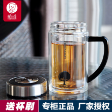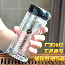 专柜正品 上海希诺单双层玻璃杯子 密封过滤茶杯带盖透明水杯6702