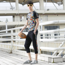 forquee夏季男士运动套装运动短袖套装短袖七分裤运动服套装