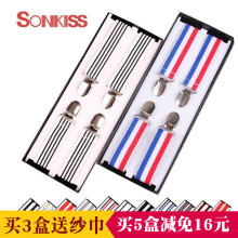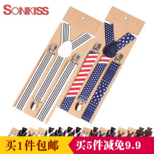 sonkiss英伦风背带夹吊带吊裤带 男士女士韩版条纹背带夹吊裤带