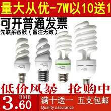 10送1 螺旋管节能灯泡E27e14螺口3W5W7W9W13W18W白光暖光光源灯泡