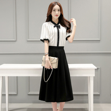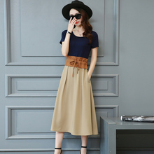 2017夏季新款韩版半袖连衣裙小清新纯色高腰a字显瘦中长款裙子女