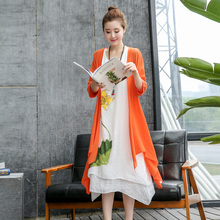 夏季中长款棉麻连衣裙两件套民族风文艺大码宽松裙子女装套装学生