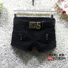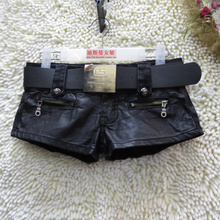 2016秋冬新款韩版显瘦黑色牛仔短裤热裤女靴裤夜店性感pu皮超短裤