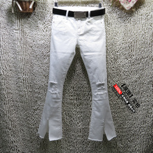 2017春夏季新款微喇叭白色牛仔裤女时尚流苏弹力破洞牛仔九分裤潮