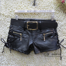 夜店时尚性感显瘦PU皮超短裤个性侧边绑带低腰靴裤女秋冬季新款潮