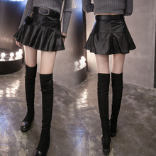2016秋冬新款韩版女皮裙半身裙低腰a字裙百搭显瘦百褶裙pu皮短裙