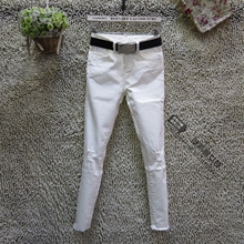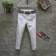 2017春夏季简约白色牛仔九分裤女低腰弹力修身显瘦百搭小脚铅笔裤