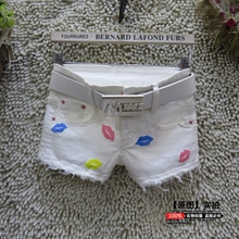 牛仔短裤女2017夏季新款全棉嘴唇印花热裤修身显瘦白色休闲裤薄款