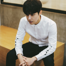 春季衬衫男长袖修身 韩版 休闲修身款小鸟刺绣潮流衬衫常规衬衣