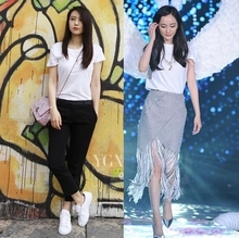 2017夏杨幂高圆圆明星同款纯棉简约圆领短袖T恤纯色打底衫白色女