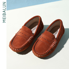 美巴伦童鞋男童豆豆鞋浅口鞋软底单鞋儿童豆豆鞋头层皮鞋女童皮鞋