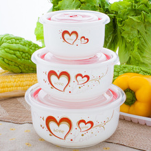 陶瓷保鲜碗套装三件套微波炉碗保鲜盒大号密封碗餐具套装便当饭盒