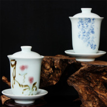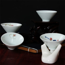 a007景德镇意凡陶瓷高档套装 茶杯套装 手绘茶具 水杯4个斗笠杯