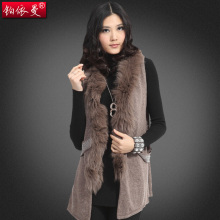 铂依曼韩版兔毛领时尚百搭春冬开衫2016秋装新款女装中长款马甲潮