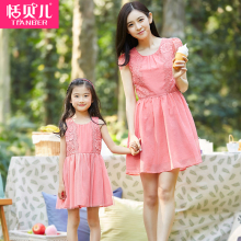 恬贝儿亲子装夏装母女装套装连衣裙2017新款韩版大码女童礼服裙子