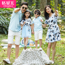 海边沙滩亲子装夏装2017新款全家装一家三口夏季家庭装母女套装