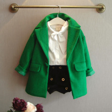 2016秋冬季女童小中童糖果色翻领中长款毛呢子大衣 儿童西装外套