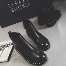 2016韩版秋冬新款铆钉侧拉链短靴女平底真皮马丁靴女鞋短筒女靴子