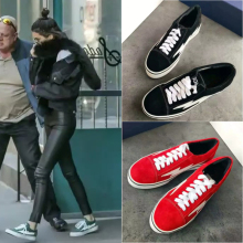 2017春夏明星同款帆布板鞋女磨砂真皮平底厚底系带情侣运动板鞋女