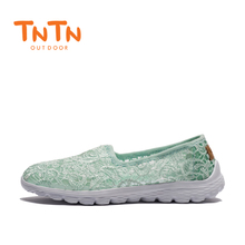 TNTN韩版春夏季单鞋低帮蕾丝轻网布缓震透气女一脚蹬运动休闲跑鞋