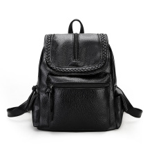 双肩包女韩版潮pu休闲旅行背包简约纯黑色学院风书包时尚女包957