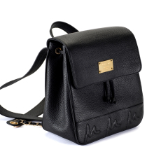 Mafia Qiu Punk Bag时尚黑色荔枝纹真皮女包头层牛皮双肩包背包女