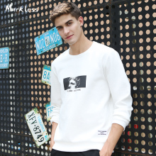 Markless春季加绒厚卫衣男白色运动宽松上衣男士套头印花圆领休闲
