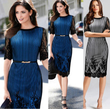 亚马逊速卖通Ebay欧美明星时尚修身中袖性感 蕾丝连衣裙铅笔裙