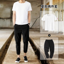夏装男一套男士九分裤套装短袖T恤夏季薄款衣服潮男装休闲两件套