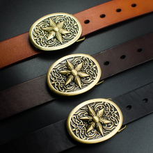 复古男头层牛皮腰带纯铜手工皮谢里丹唐草系列中国风裤带个性腰带