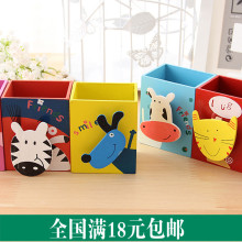 圣诞礼物 卡通日韩国创意文具 可爱时尚动物收纳木质相框笔筒木制