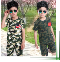 儿童迷彩服套装2017夏装新款男童短袖莫代尔男孩军装运动服中大童