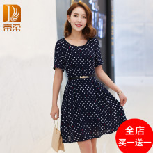 帝柔2017夏装新品波点女装显瘦中长款雪纺大码连衣裙