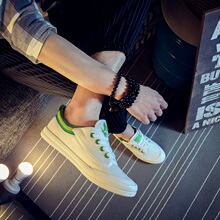 夏季男士白色低帮帆布鞋情侣款布鞋男潮流运动板鞋系带单鞋潮男鞋