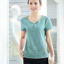 2016夏装新款宽松大码40岁中年妈妈装亚麻打底T恤衫棉麻T恤女短袖