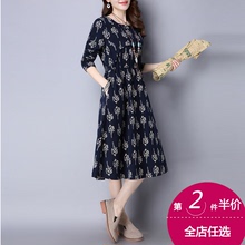 纯棉长袖连衣裙文艺民族风2017春季新款休闲百搭收腰棉麻碎花长裙
