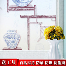丫丫客厅移门装饰自粘玻璃贴膜复古怀旧透光青花瓷磨砂贴纸
