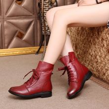 妈妈鞋高跟中年短靴老年女加绒靴子马丁靴中跟棉鞋中筒靴冬季真皮