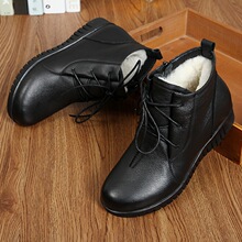 冬季妈妈鞋棉鞋真皮保暖加绒加厚防滑平底系带中老年女鞋老人短靴